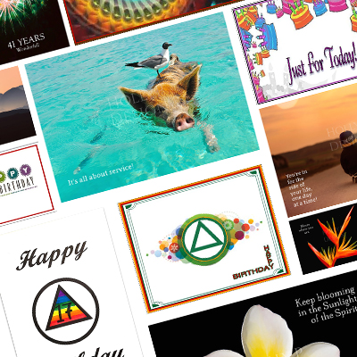 • 12 Step Birthday Cards, Greeting Cards, Wallet Cards, Book Markers