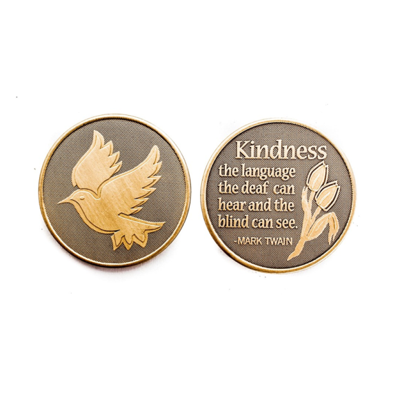 Front: Kindness-the language the deaf can hear and the blind can see Back: Dove