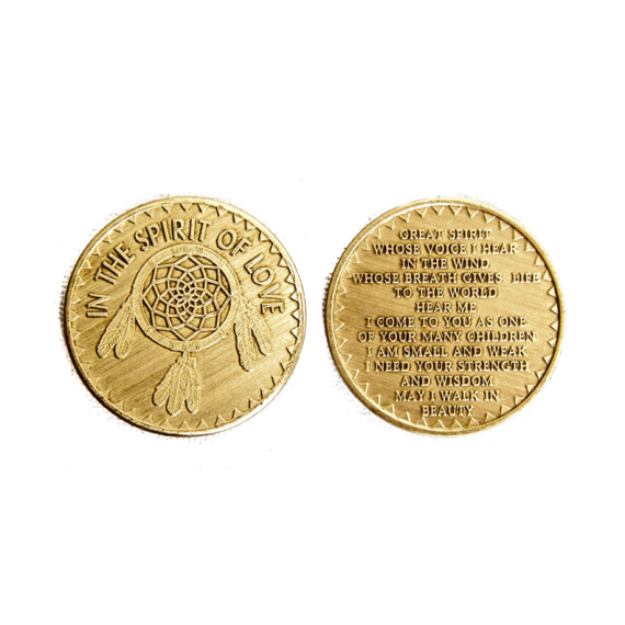 Front: In the Spirit of Love with Dream Catcher Back: Great Spirit whose voice I hear in the Wind whose breath gives life to the World Hear me I come to You as one of your many Children, I am small and weak I need your strength and wisdom may I walk in beauty